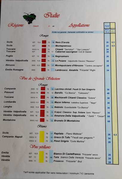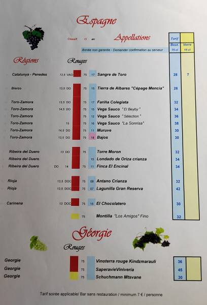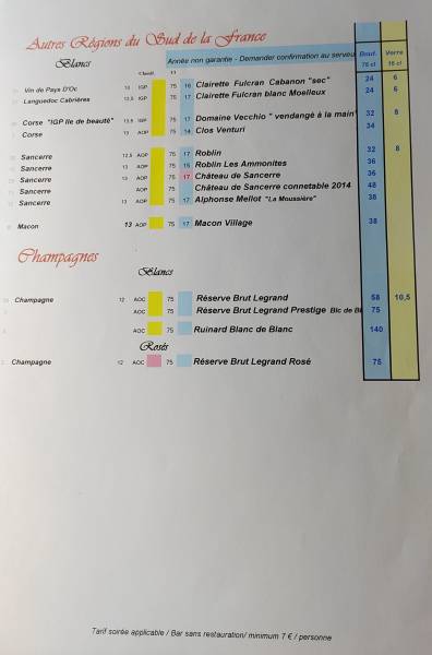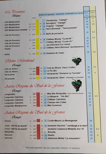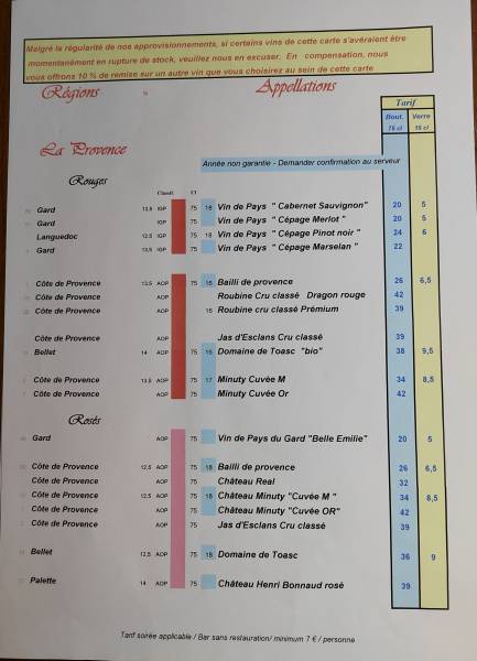 La carte des vins dans notre restaurant situé à Nice Place Masséna
