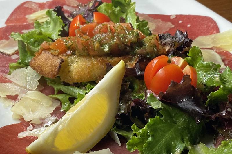 | Carpaccio de bœuf et fromage manchego, servi avec pan tomate | 22.00€ |